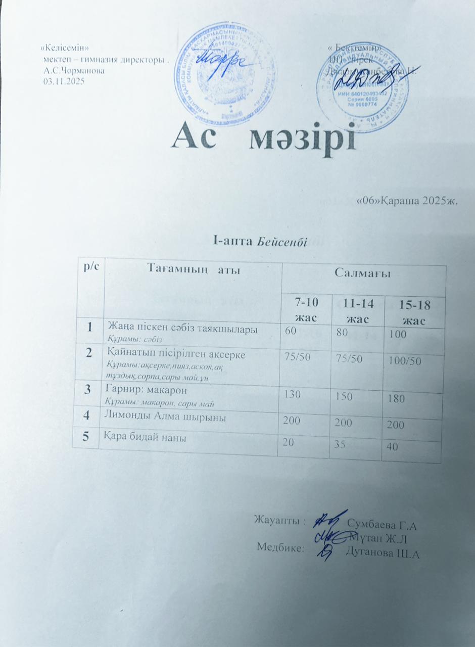 Ас мәзірі 06.11.2025ж
