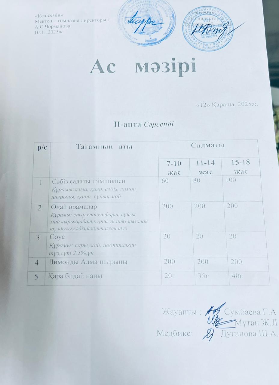 Ас мәзірі 12.11.2025ж