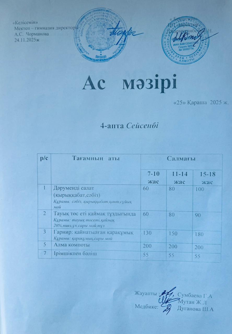 Ас мәзірі Қыс-Көктем 2024-2025ж