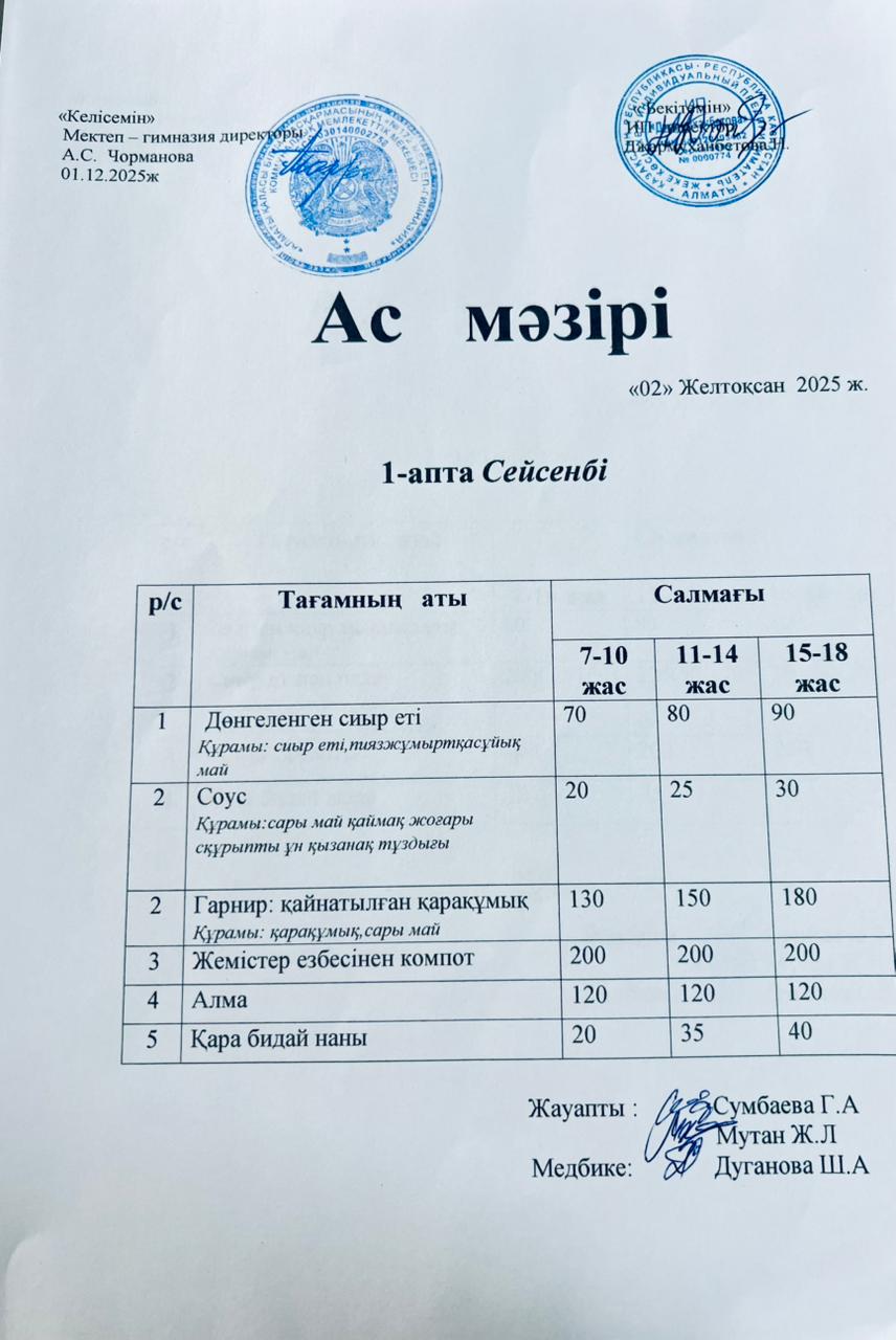 Ас мәзірі Қыс-Көктем 2024-2025ж