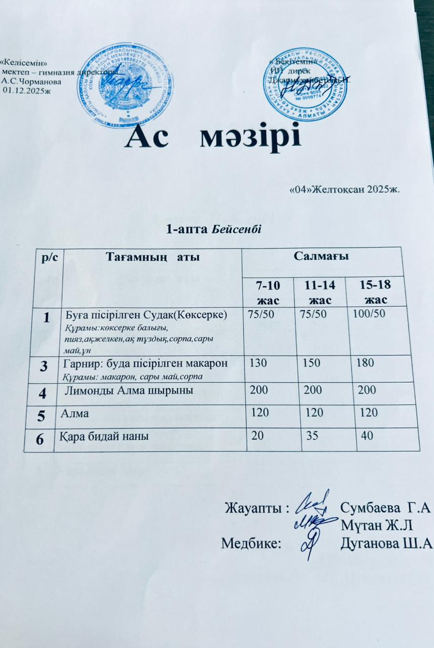 Ас мәзірі Қыс-Көктем 2024-2025ж