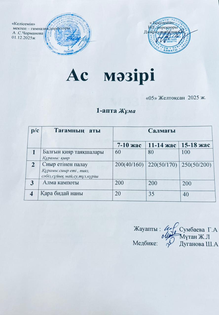 Ас мәзірі Қыс-Көктем 2024-2025ж
