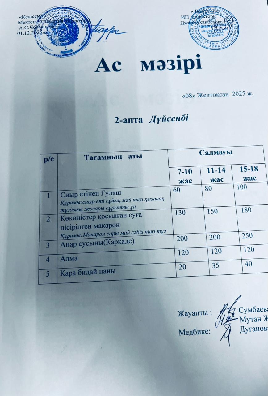 Ас мәзірі Қыс-Көктем 2024-2025ж