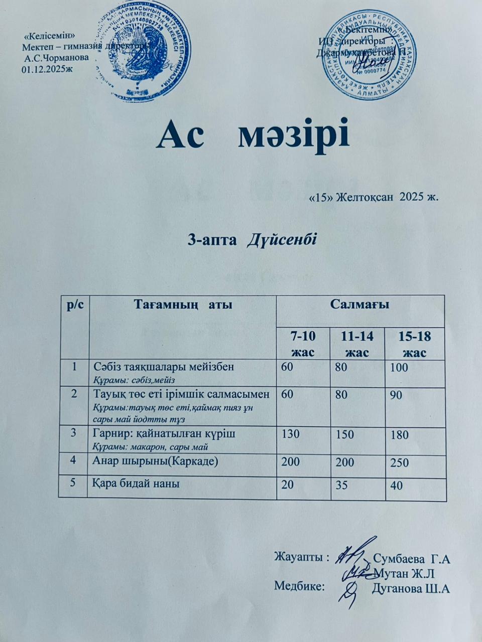 Ас мәзірі 15.12.2025ж